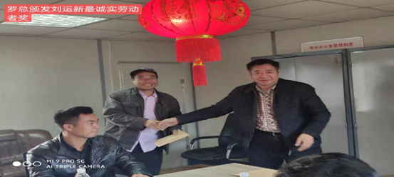 刘运新自2018年6月来阿,由于工作的需要,他一直坚守阵地没有回国,并时刻劳动在第一线,任劳任怨,为人忠诚老实,常常服从安排,不怕脏、不言累。罗总给予颁发了最诚实劳动者奖。
